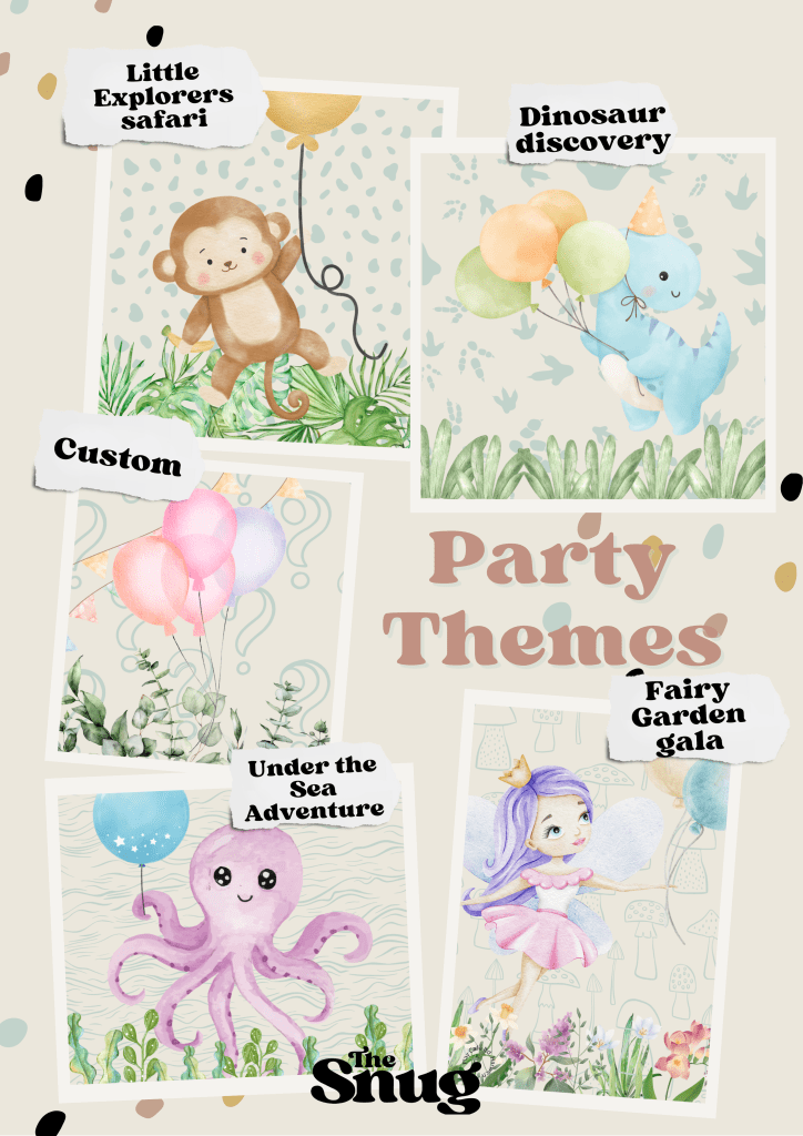 - Bespoke theme- Whether your child loves a certain show, film, sport or has a special interest, We would love to provide them with a magical party they will remember forever. Bespoke theme options can include: Custom invites to match/printed or digital, Custom décor, Party plates and napkins and Different toys/sensory activities out. Let us know what your little loves, no matter how niche, and we will go above and beyond to create their best day ever. POA